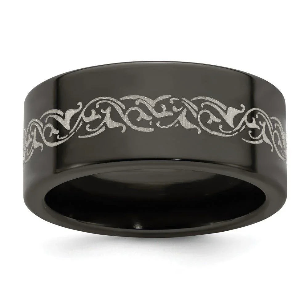 Bracelet Edward Mirell en titane noir à motif laser plat de 10 mm