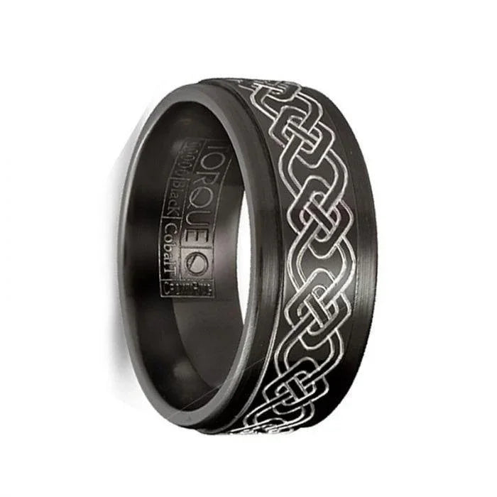 Alliance Torque en cobalt noir avec nœud celtique en relief au laser et bords polis - 9 mm