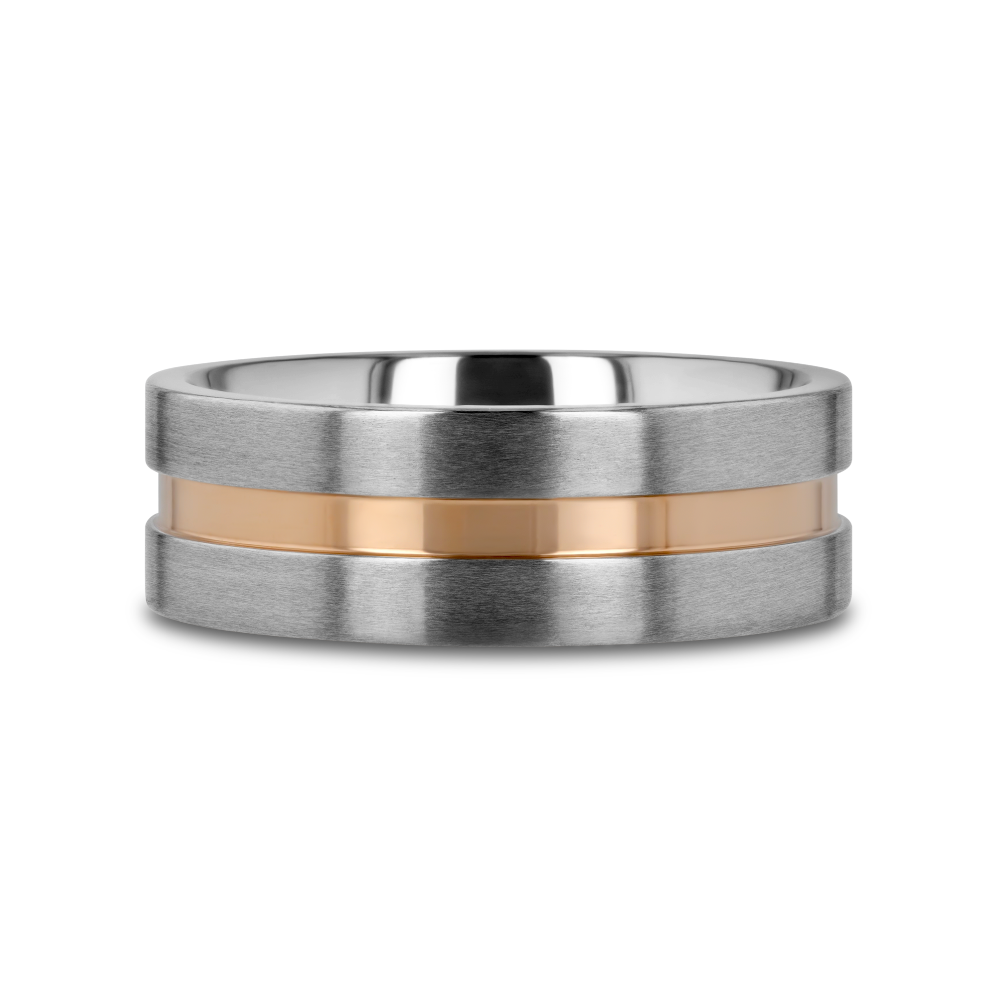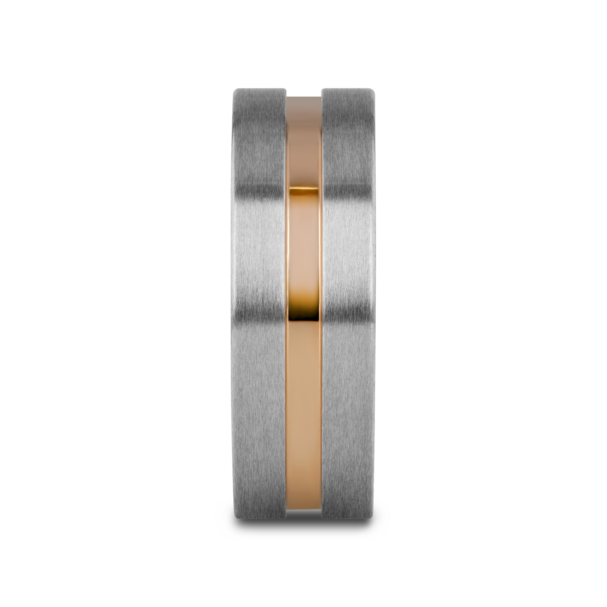 Alliance MARS en titane brossé plat pour homme avec rainure centrale plaquée or rose – 8 mm