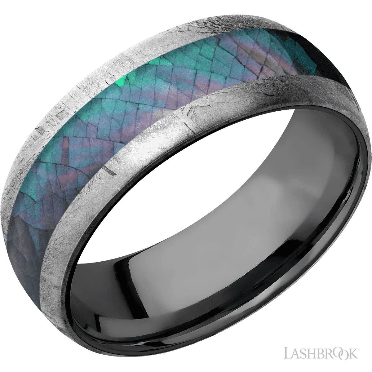 Météorite sans finition, incrustation de nacre noire et zirconium - 8 mm