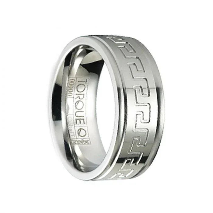 Alliance en cobalt polie et gravée avec clé grecque et double rainure - 9 mm
