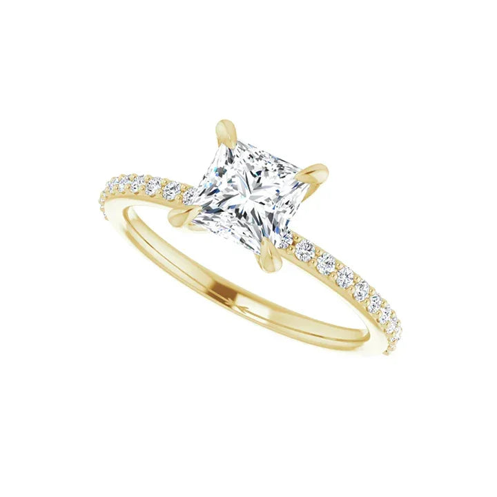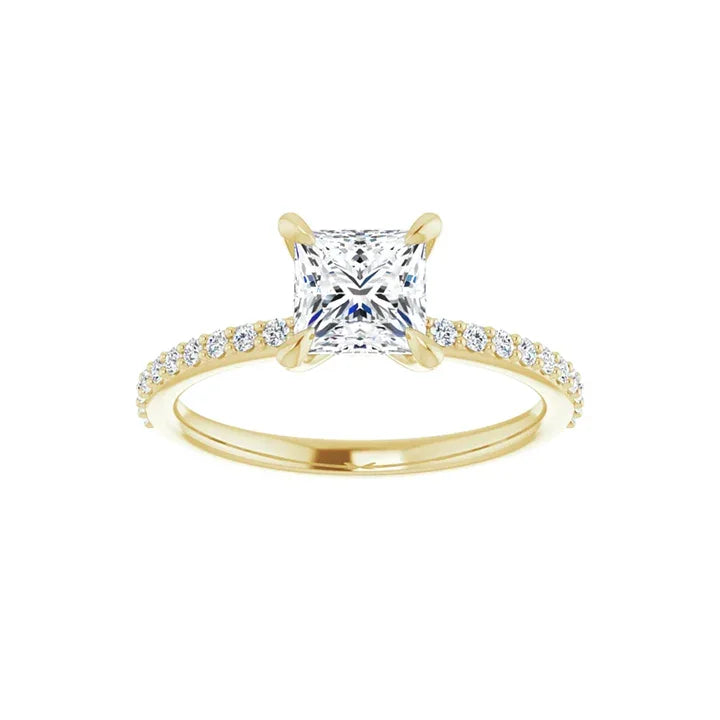 Bague de fiançailles SADIE en or jaune 14 carats avec diamants de laboratoire taille princesse carrée