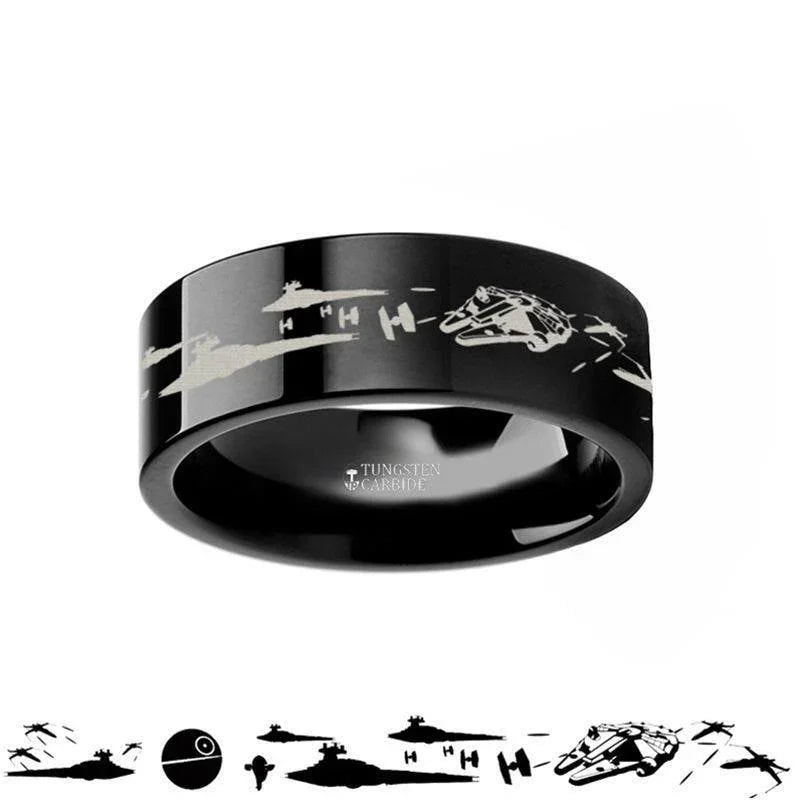 Bague en tungstène noir Star Wars Un nouvel espoir Bataille spatiale Étoile de la mort Épisode IV - 4 mm - 12 mm