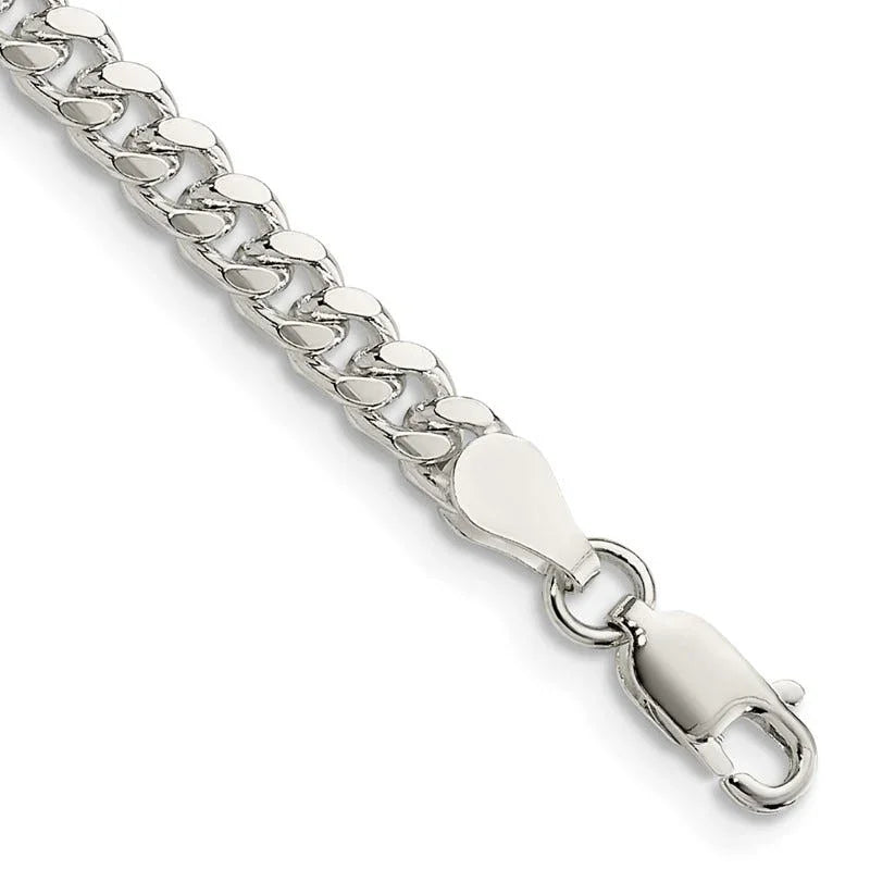 Bracelet en argent sterling de 4 mm avec chaîne gourmette bombée D/C latérale