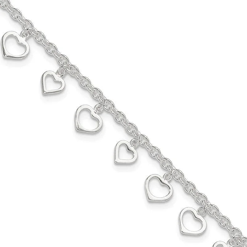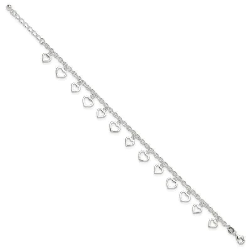 Bracelet de cheville en argent sterling poli avec cœur de 20 cm et 2,5 cm de large