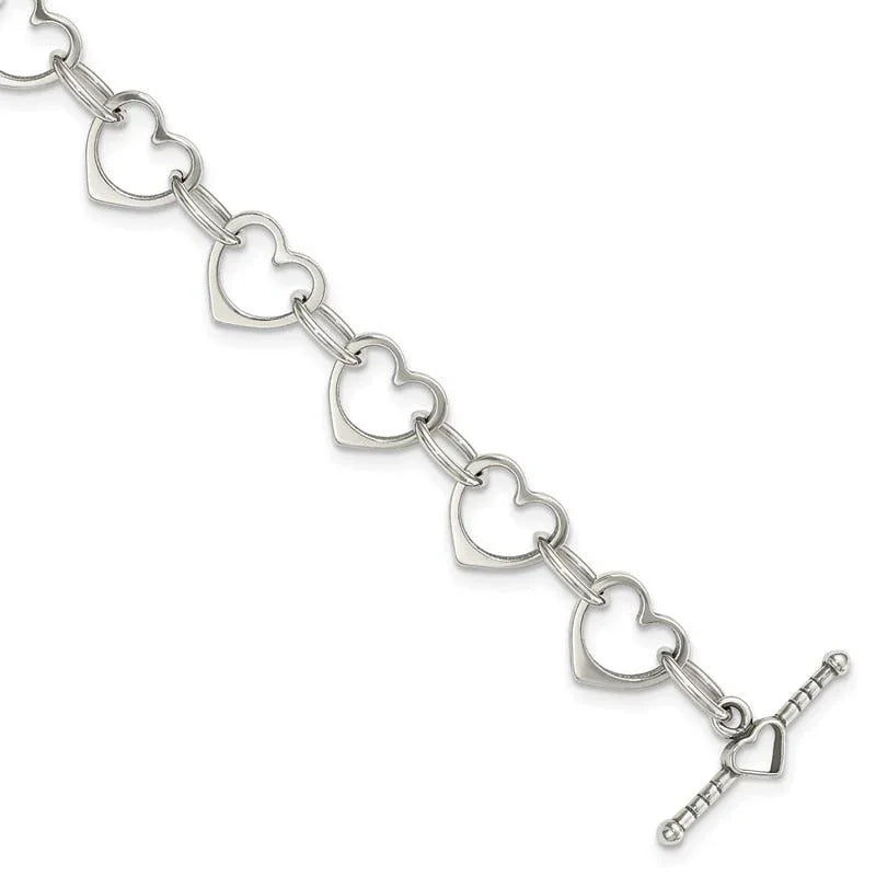 Bracelet à maillons en argent sterling avec cœur et cercle