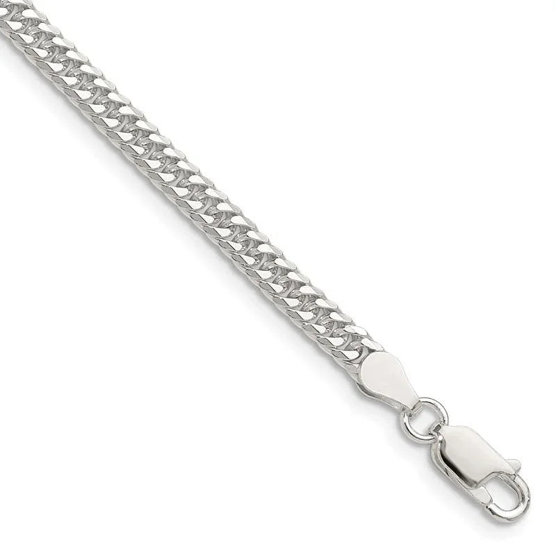 Bracelet en argent sterling poli de 3,9 mm avec double chaîne gourmette taille diamant