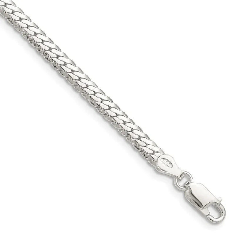 Bracelet à chaîne plate ovale double en argent sterling poli de 4,1 mm