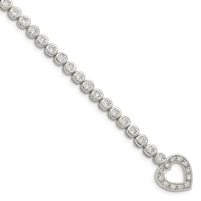 Ce bracelet rivière en argent sterling rhodié de 19 cm avec zircones cubiques et cœur apporte une touche d'élégance et d'éclat à toutes vos tenues. Fabriqué avec des matériaux de haute qualité et orné d'une breloque cœur, il est parfait pour les grandes occasions ou au quotidien. Le rhodiage garantit un éclat et une durabilité durables.