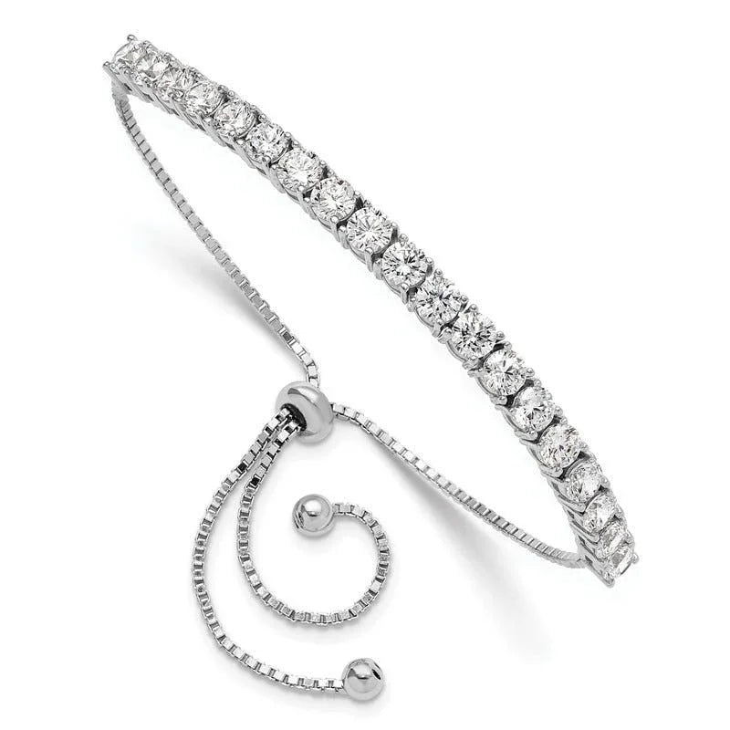 Bracelet tennis réglable en argent sterling rhodié et zircones cubiques polies