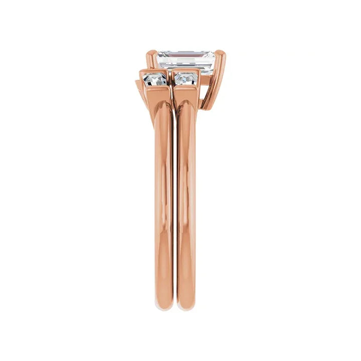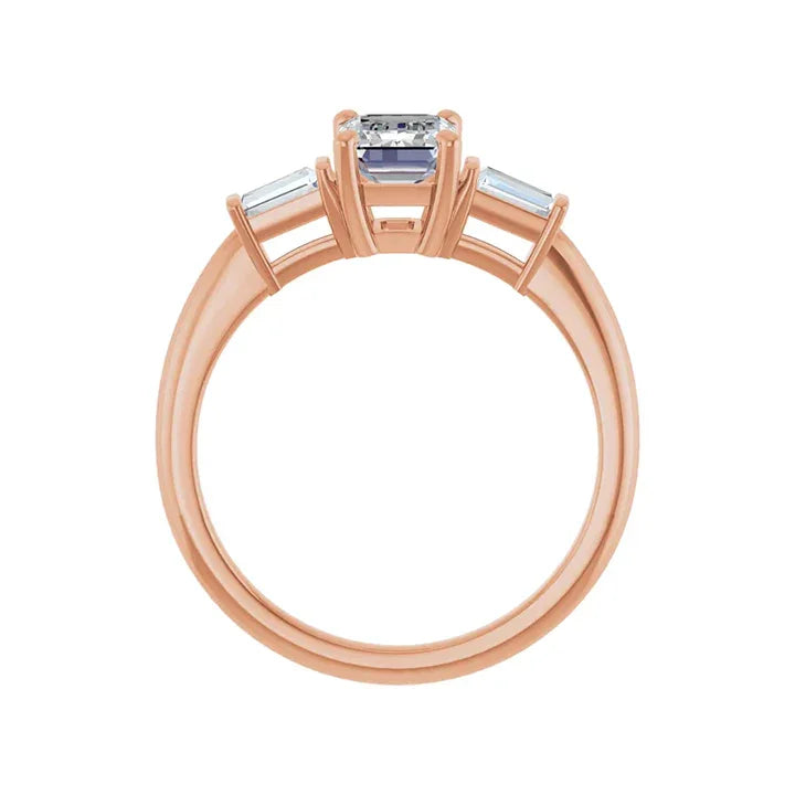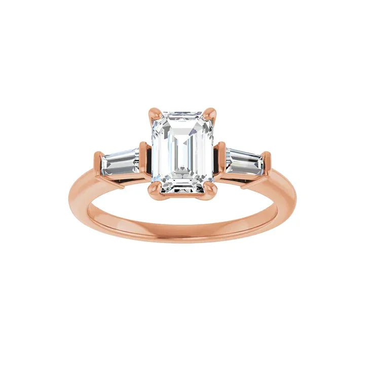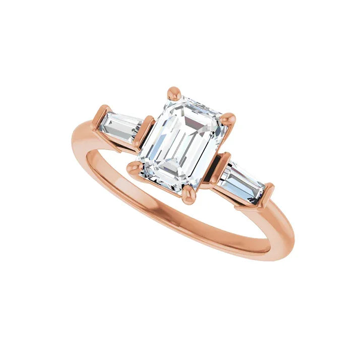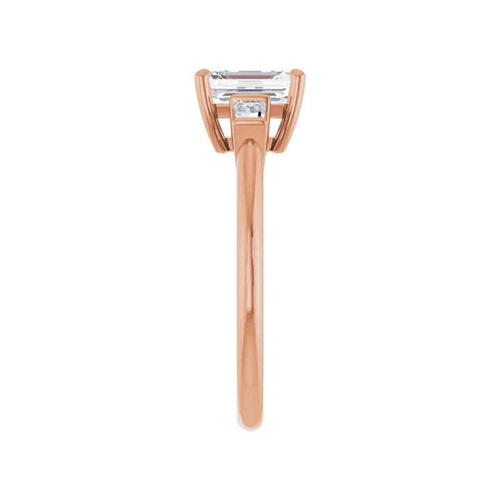 Bague de fiançailles VIVIAN en or rose 14 carats avec diamants de laboratoire taille émeraude