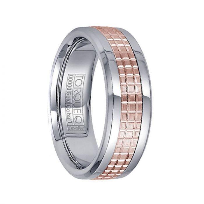 Des rainures captivantes créent un motif à carreaux au centre de cette alliance pour homme signée Crown Ring. Elle est façonnée en or rose 14 carats et cobalt blanc poli. Son intérieur est arrondi et sa largeur est de 7,5 mm. Vous trouverez également des modèles similaires dans notre collection en or rose. Cette bague est garantie à vie par Crown Ring contre les rayures, la casse et les défauts de fabrication.