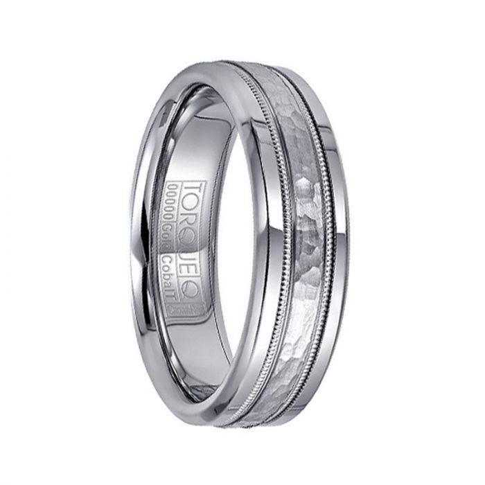 Bague en cobalt blanc avec incrustation millegrain en or blanc 14 carats martelé - 6 mm