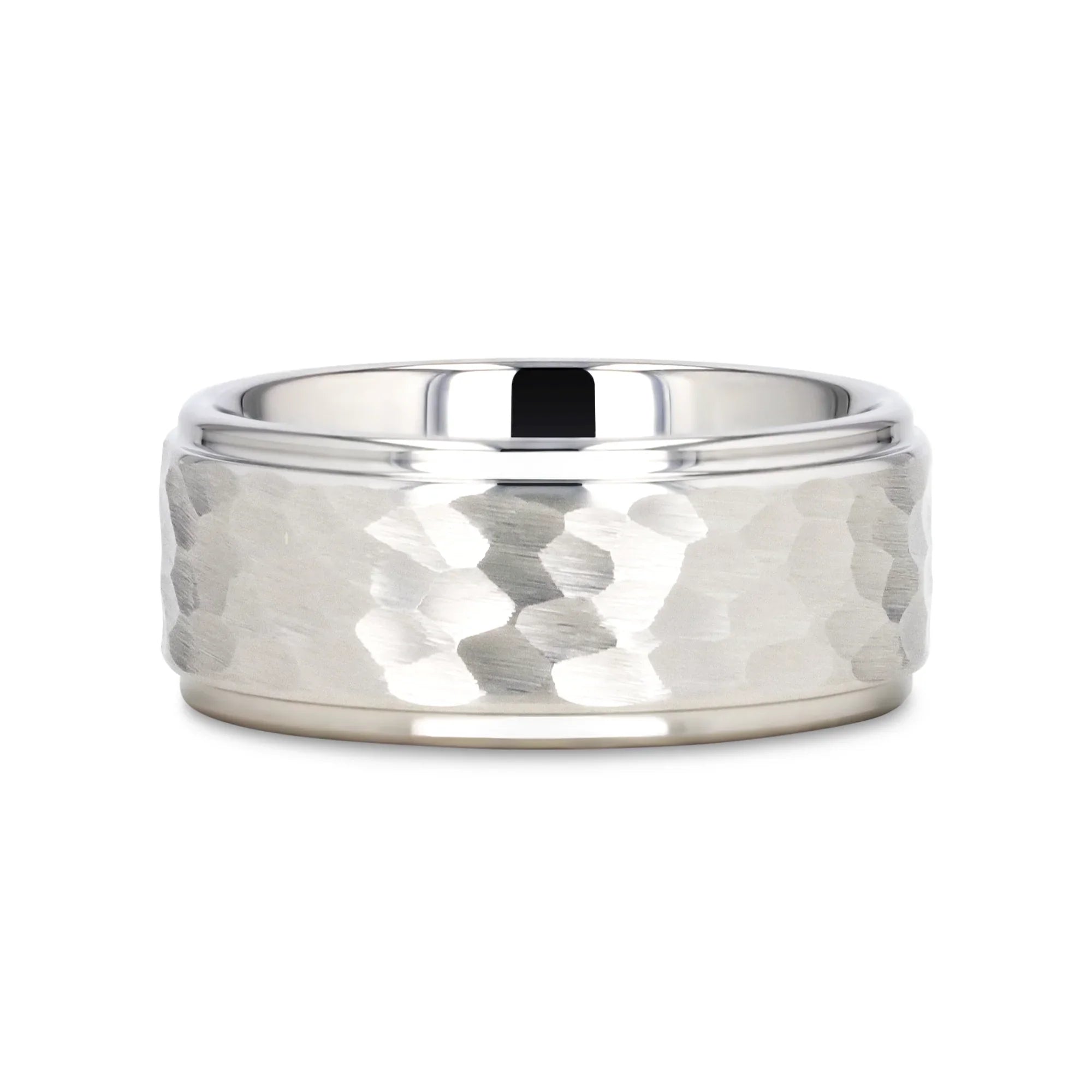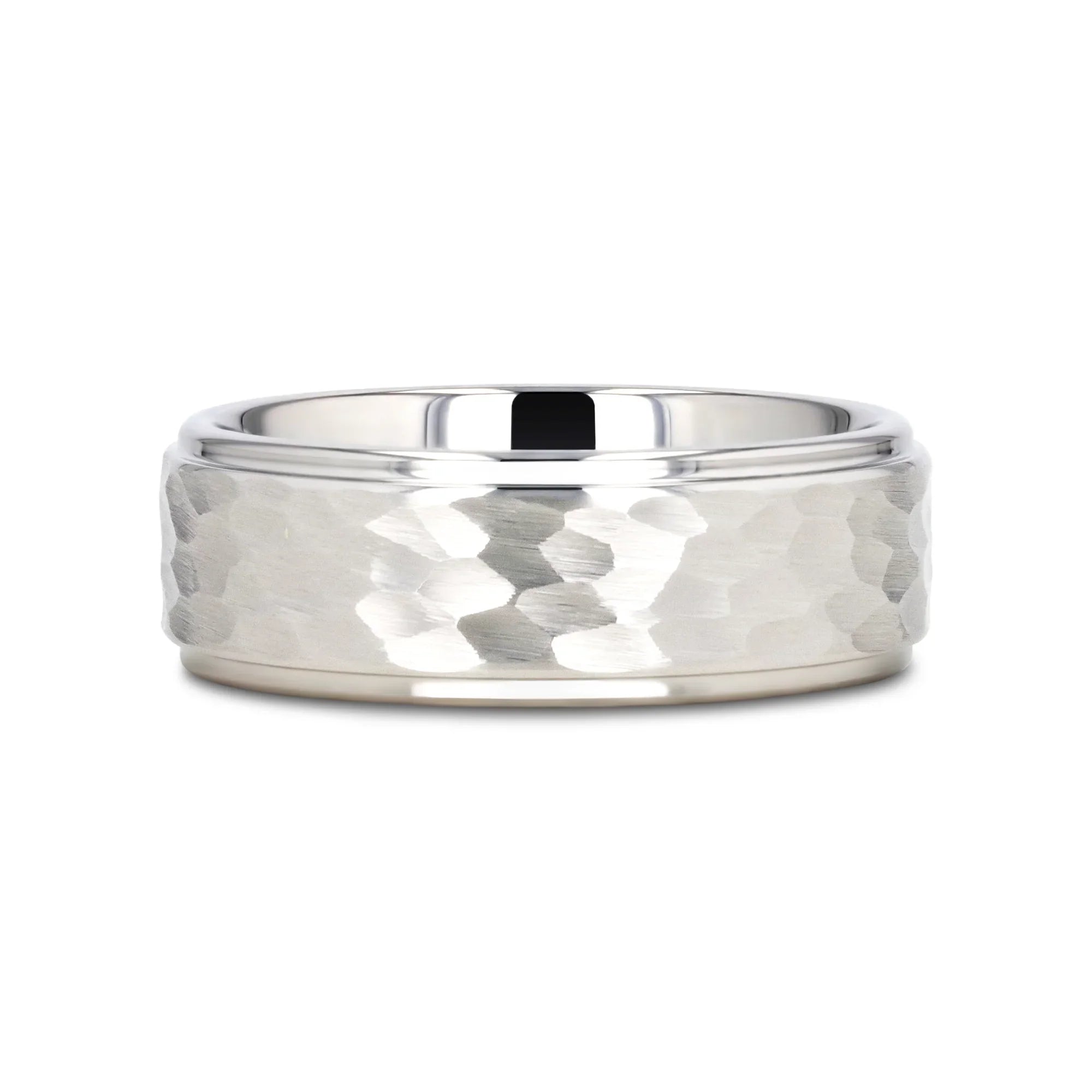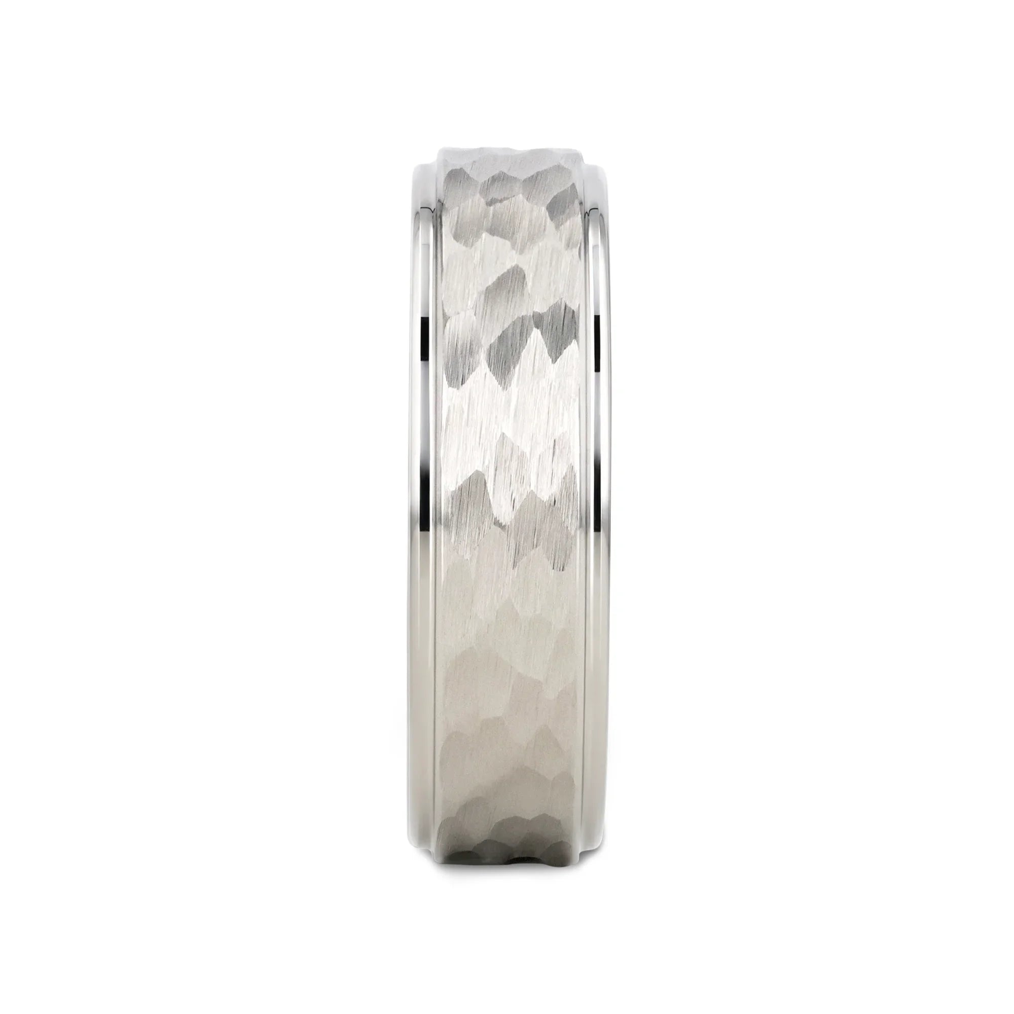 Bague en tungstène blanc WINSTON avec finition martelée en relief et bords polis en gradins - 4 mm - 10 mm