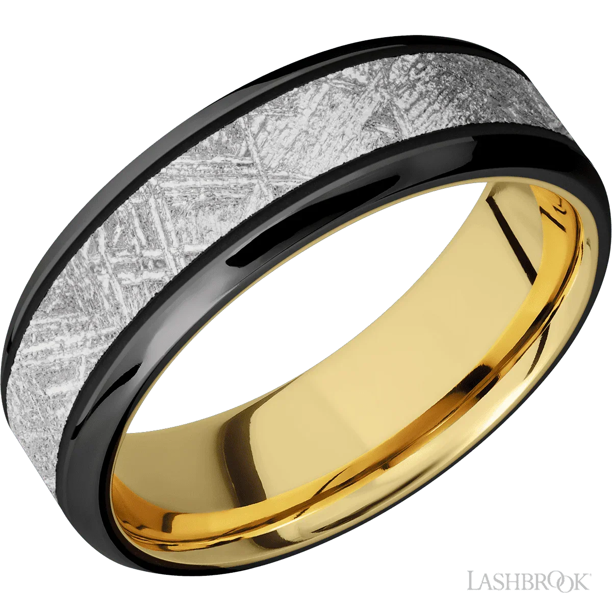Zirconium avec finition polie et incrustation de météorite et or jaune 10 carats - 7 mm