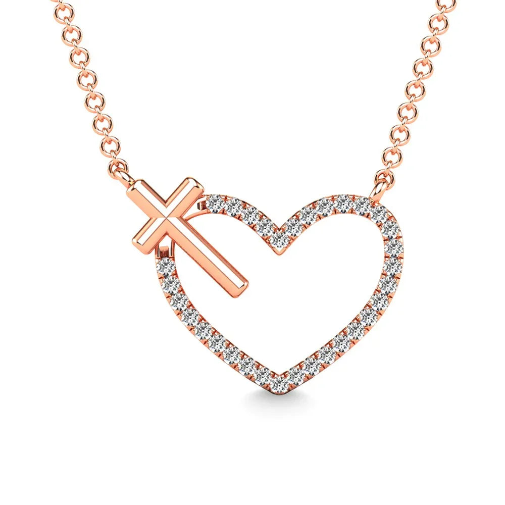 10K Rose Gold Diamond 1/10 Ct.Tw. Heart and Cross Pendant