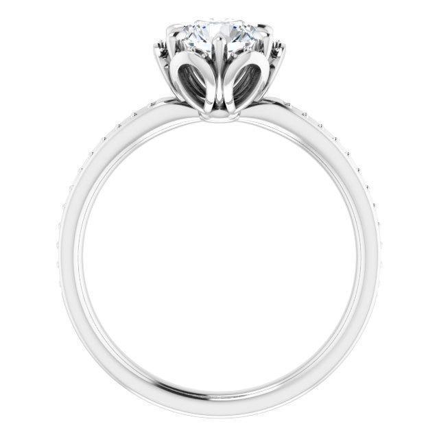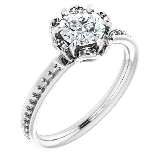 Expertly crafted in 10K white gold, this classic engagement ring features a polished finish that highlights its timeless design. The centerpiece is a stunning 9/10 CTW natural diamond, adding sparkle and elegance to the ring. Made by renowned manufacturer Stuller, this ring is a perfect symbol of love and commitment. The center diamond is certified for authenticity by a third-party grading laboratory and is engraved with the certificate number.