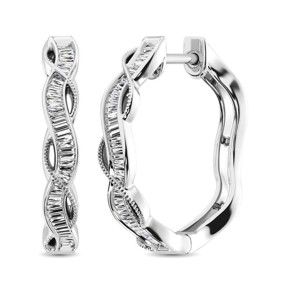 10K White Gold Baguette Diamond 1/5 Ct.Tw. Hoop Earrings