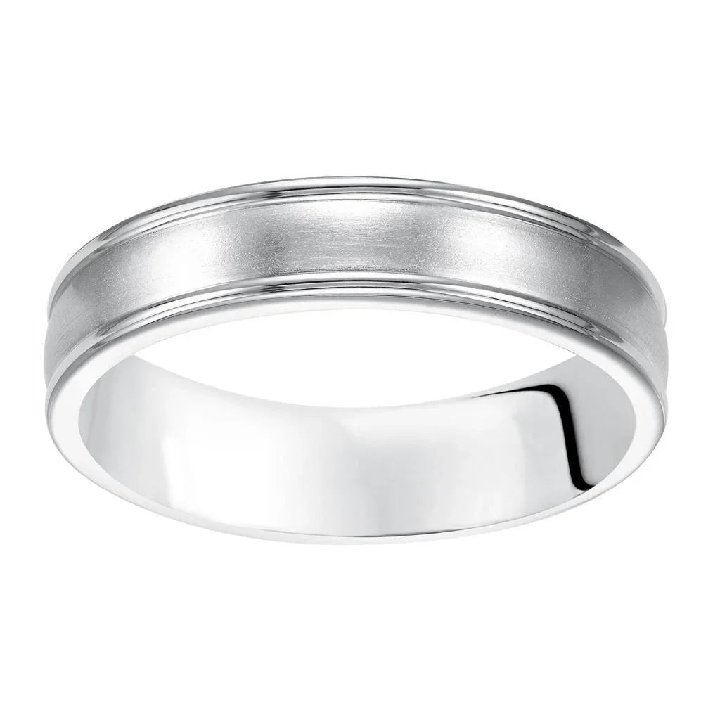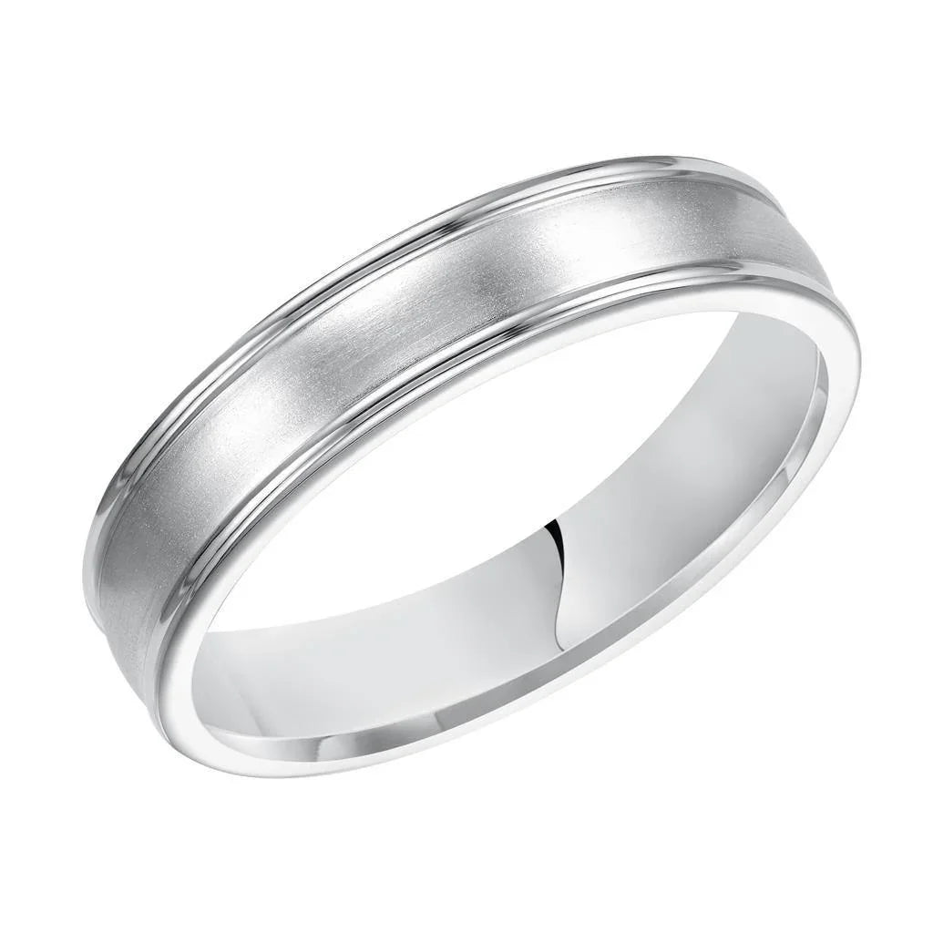 10k White Gold Brushed Finish Women’s Wedding Ring with Polished Round Edges - 5mm
