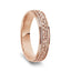 Intricate in detail, this stunning 14k rose gold ring features a textured design across the center with milgrain accents. It’s made with a low-dome style and given a polished finish for an eye-catching look. The inner shank is rounded for comfort. This ring is available in 4mm and 6mm widths and offered in a variety of metals. You may find rings similar to this style in our polished wedding bands collection. Larson Jewelers is proud to carry an assorted collection of 14k gold wedding bands. Gold is one of the most desired metals on the market and a traditional favorite for wedding jewelry. Rose gold rings are made by alloying copper with gold, giving them a warm reddish color that separates them from traditional yellow and white metal rings. Our wedding bands are available in a variety of styles, widths and finishes, making them an excellent choice for both men and women.