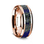 14K Rose Gold Polished Beveled Edges Wedding Ring with Lapis Lazuli Inlay - 8 mm