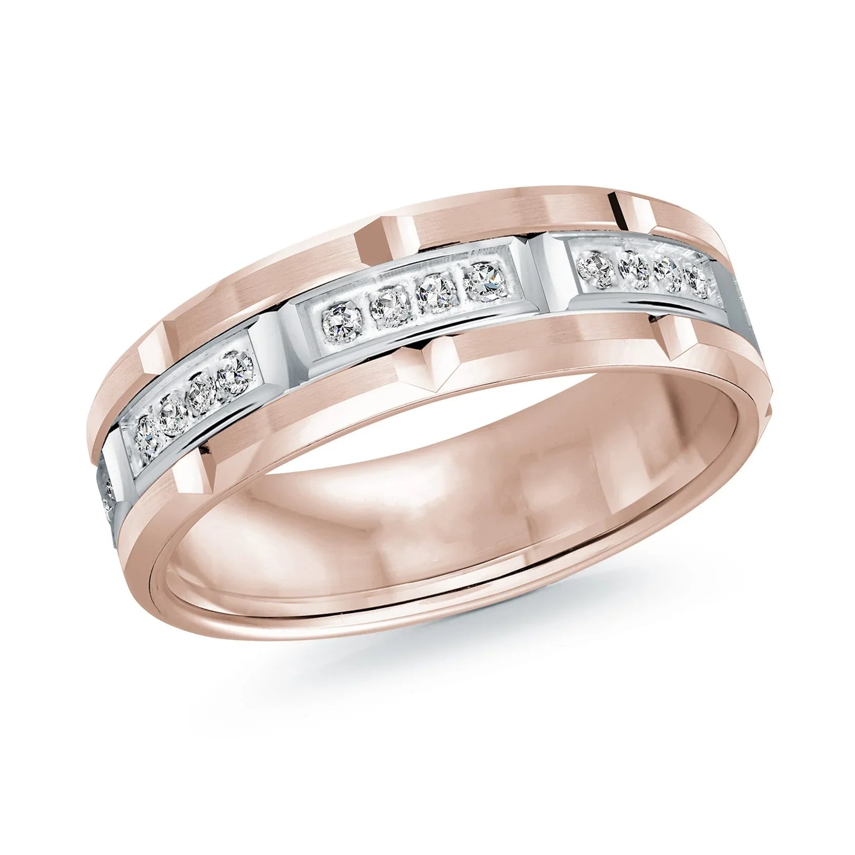 14K Rose Gold with 14K White Gold and Inlaid Diamonds Ring from the Executif Collection by Malo - FJMD-073-7PW32