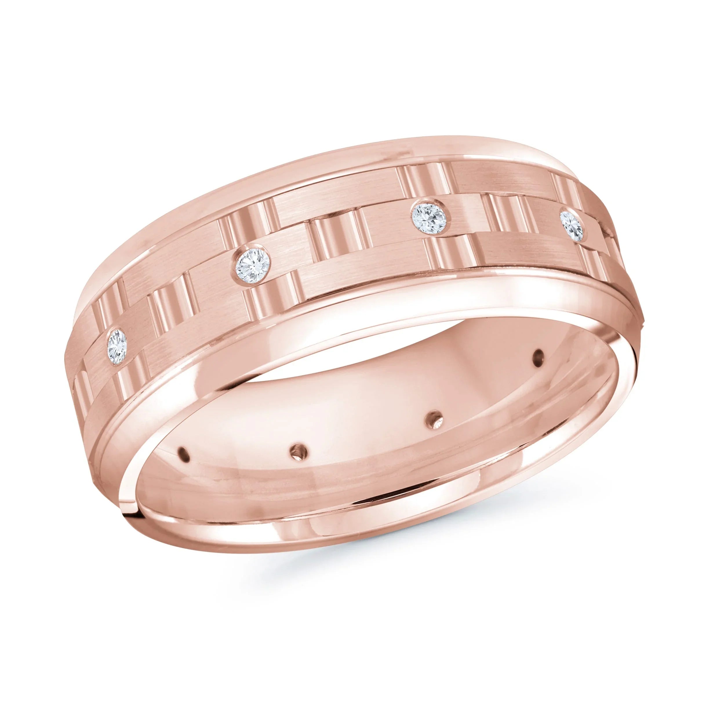 14K Rose Gold with Inlaid Diamonds Ring from the Executif Collection by Malo - MRD-086-8P15