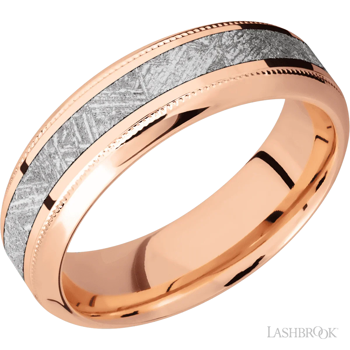14K Rose Gold with Polish , Polish Finish and Meteorite Inlay - 7MM