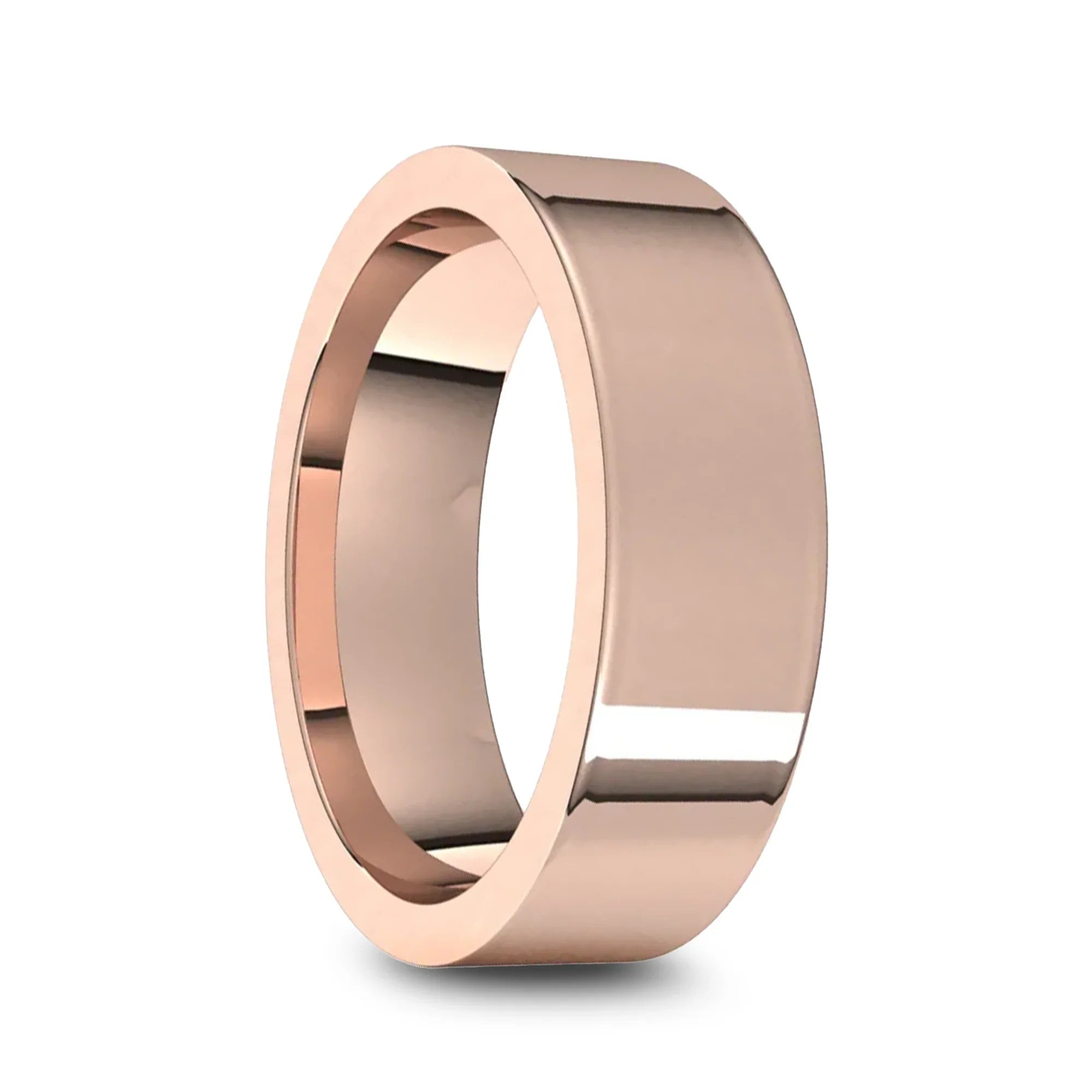 14k Rose Gold Men's Flat Ring with Polished Finish - 5mm - 10mm