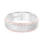 14k Two Toned White and Rose Gold Wedding Band Domed Crystalline Finish with Milgrain and Leaf Design Beveled Edges- 7 mm