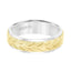 14k Two Toned White & Yellow Gold Wedding Band Raised Textured Leaf Design Polished Round Edges- 6.5 mm