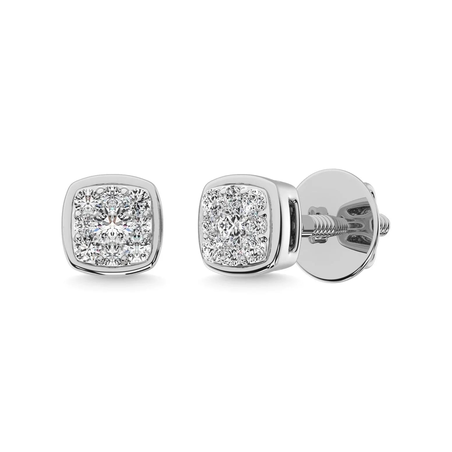 14K White Gold 1/5 Ctw Diamond Square Flower Earrings
