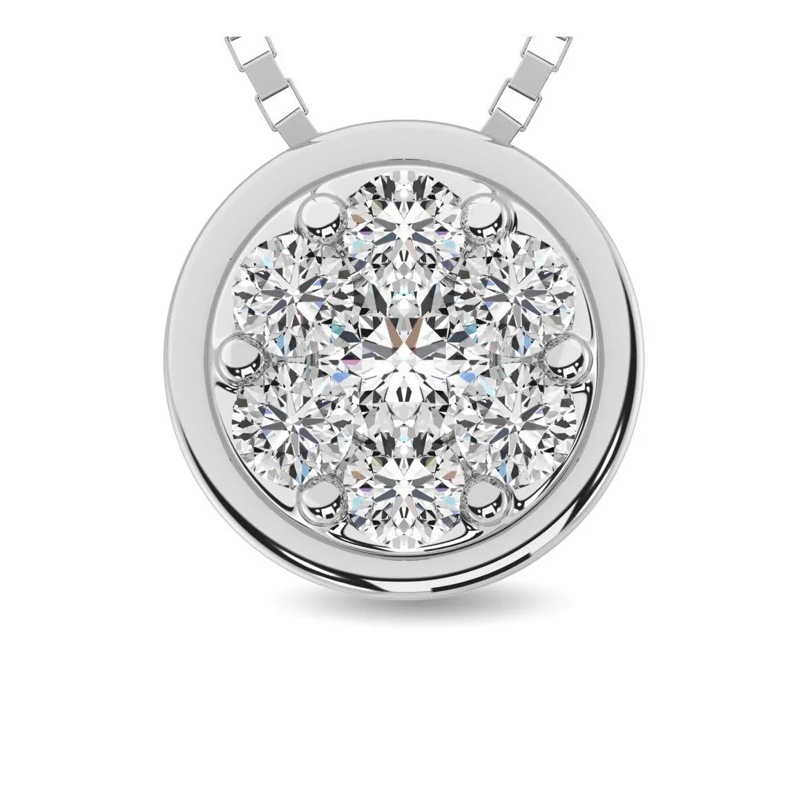 14K White Gold 1/6 Ctw Diamond Round Shape Flower Pendant