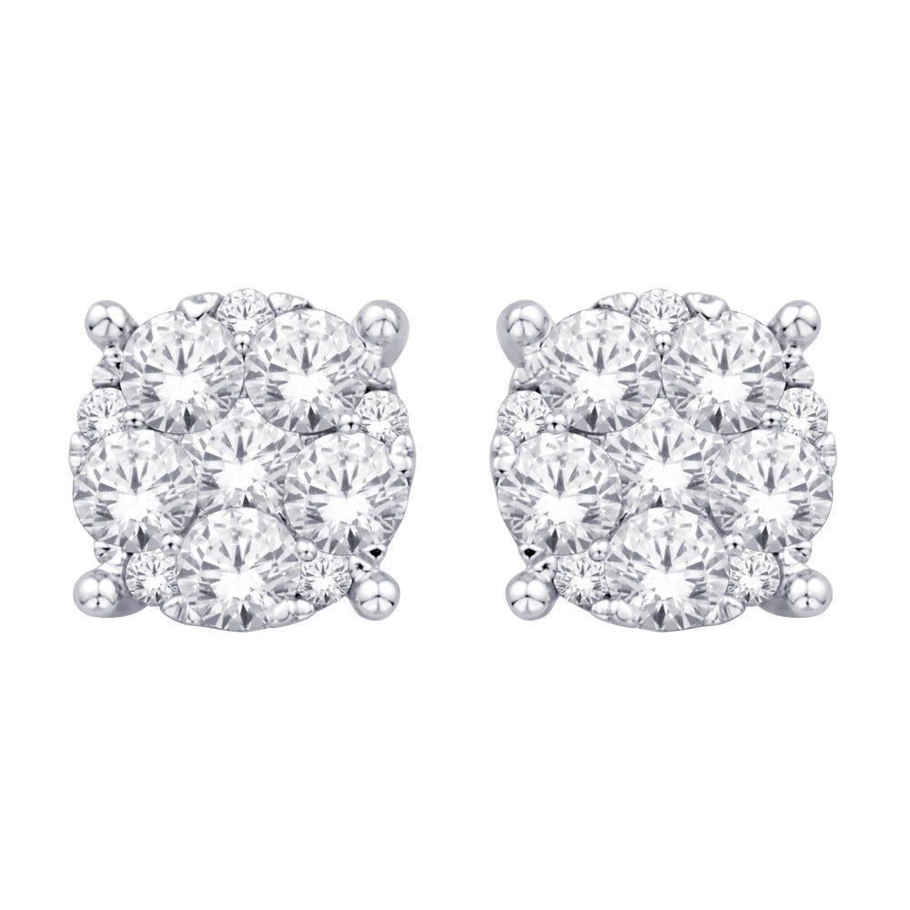 14K White Gold Diamond Flower Stud Earrings