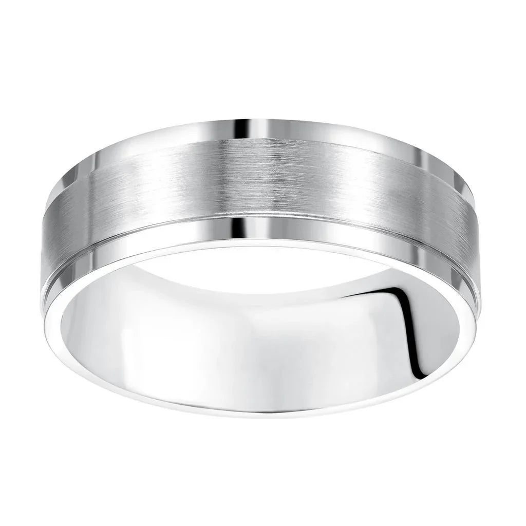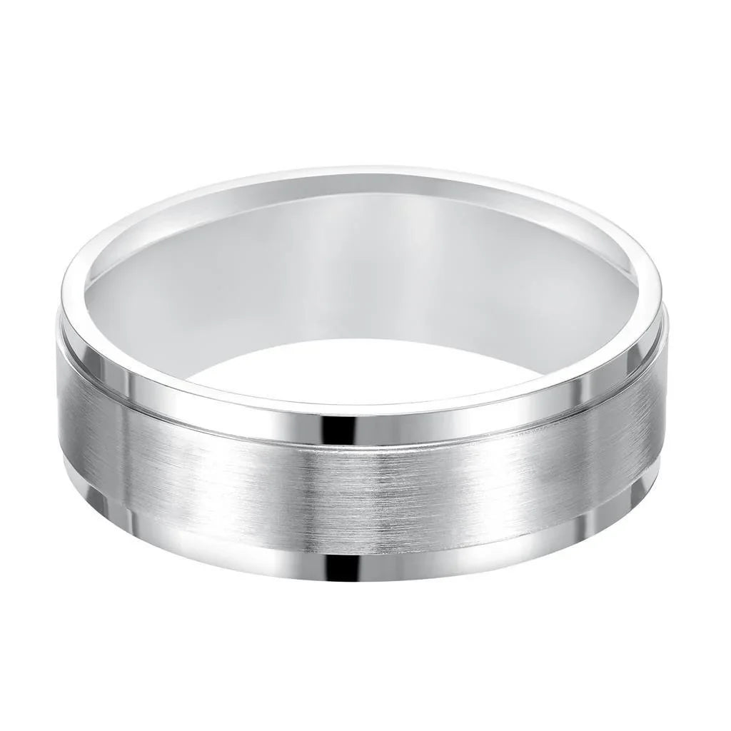 14k White Gold Brushed Center Men’s Wedding Band with Polished Step Edges - 7mm