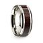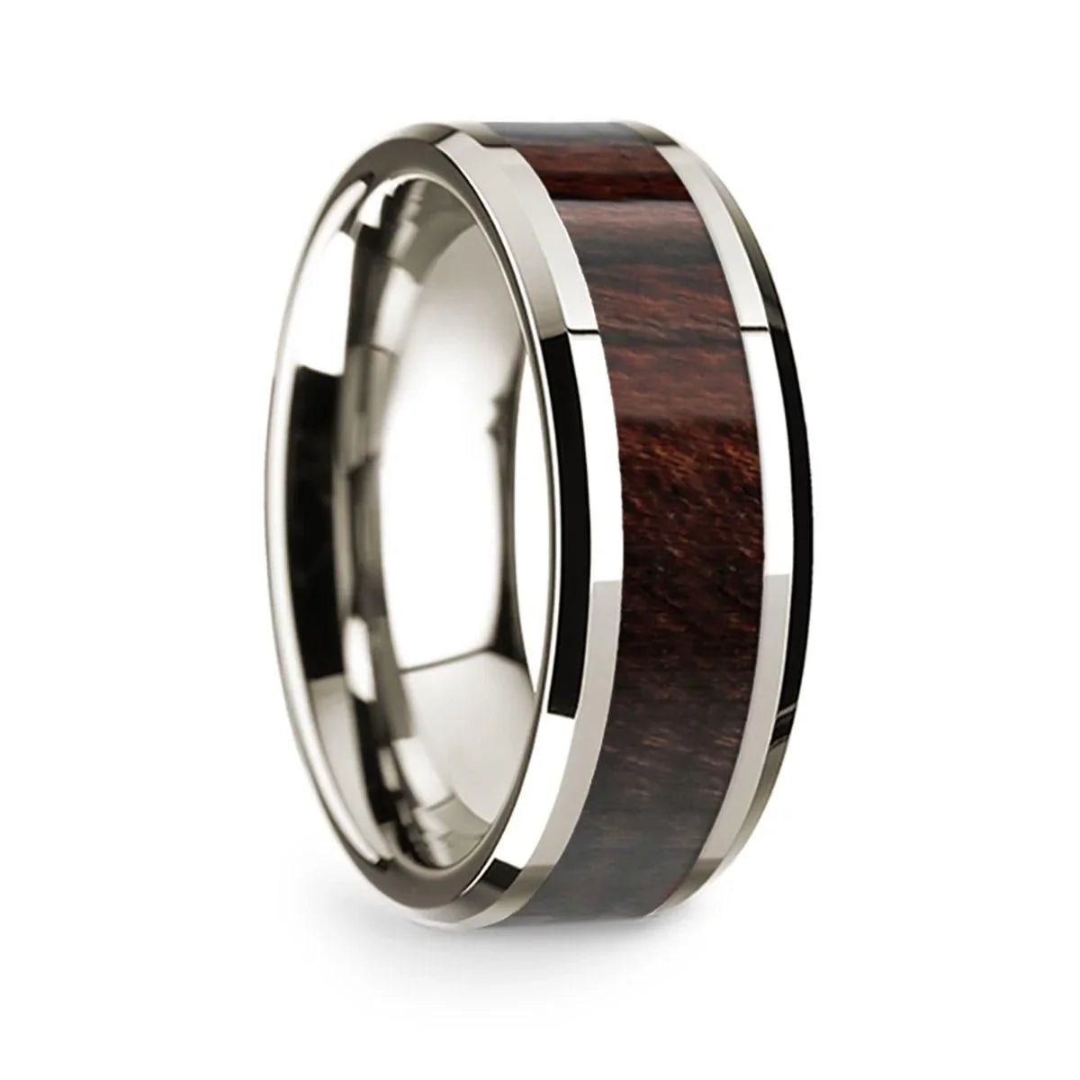 14k White Gold Polished Beveled Edges Wedding Ring with Bubinga Wood Inlay - 8 mm