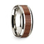14k White Gold Polished Beveled Edges Wedding Ring with Rosewood Inlay - 8 mm