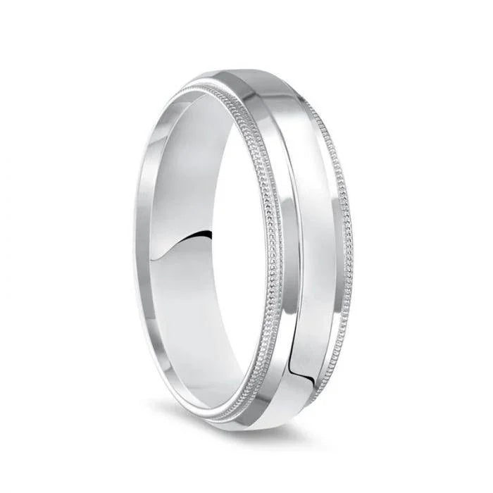 14k White Gold Polished Finish Raised Center Ring with Milgrain Edges - 4mm - 6mm