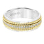 14k Two Toned White & Yellow Gold Wedding Band Dual Rope Diamond Inlay Polished Finish Flat Edges - 7 mm