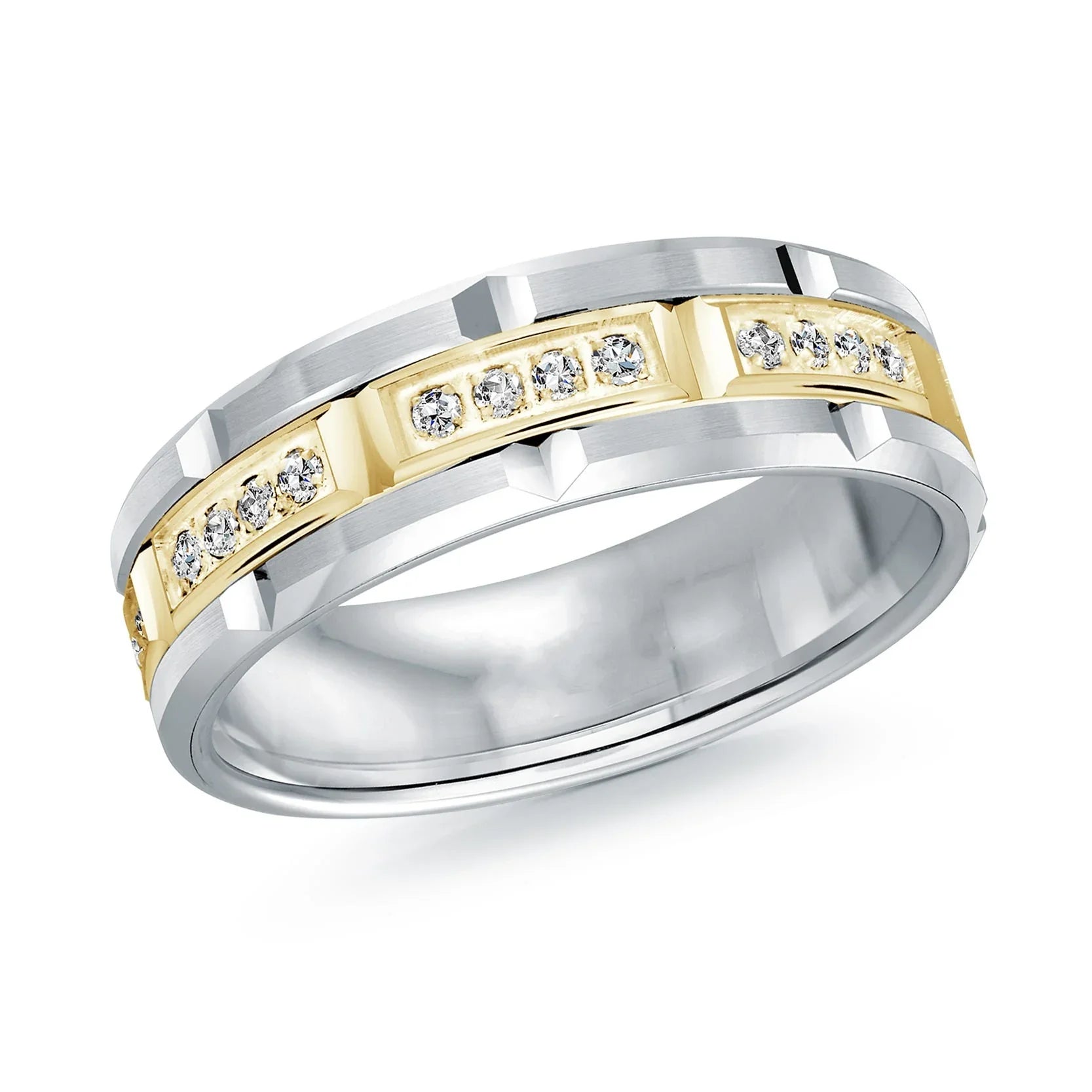 14K White Gold with 14K Yellow Gold and Inlaid Diamonds Ring from the Executif Collection by Malo - FJMD-073-7WY32