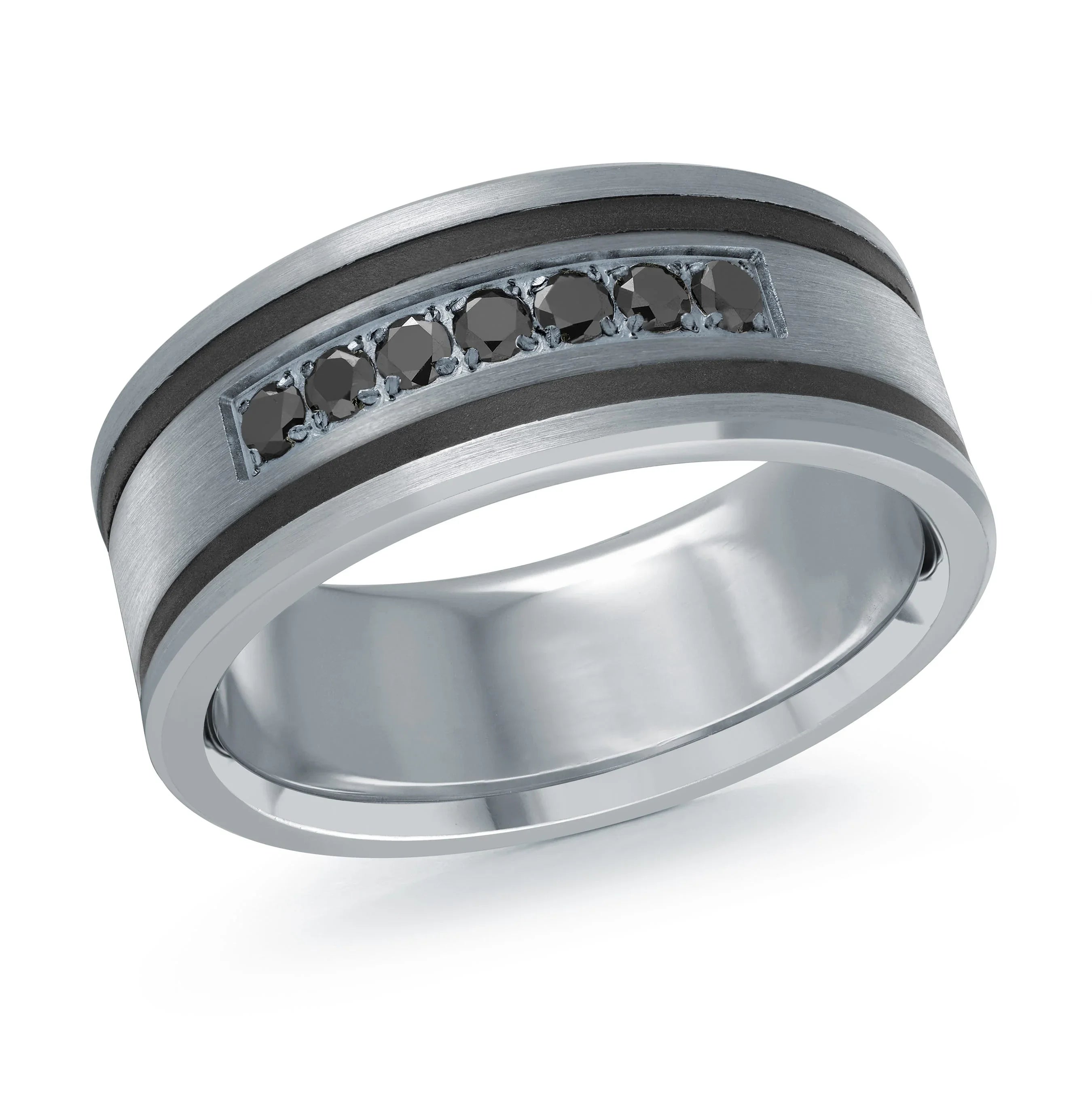 14K White Gold with Carbon Fiber Ring from the Tantalum Collection by Malo - MRDTN-040-9WBD