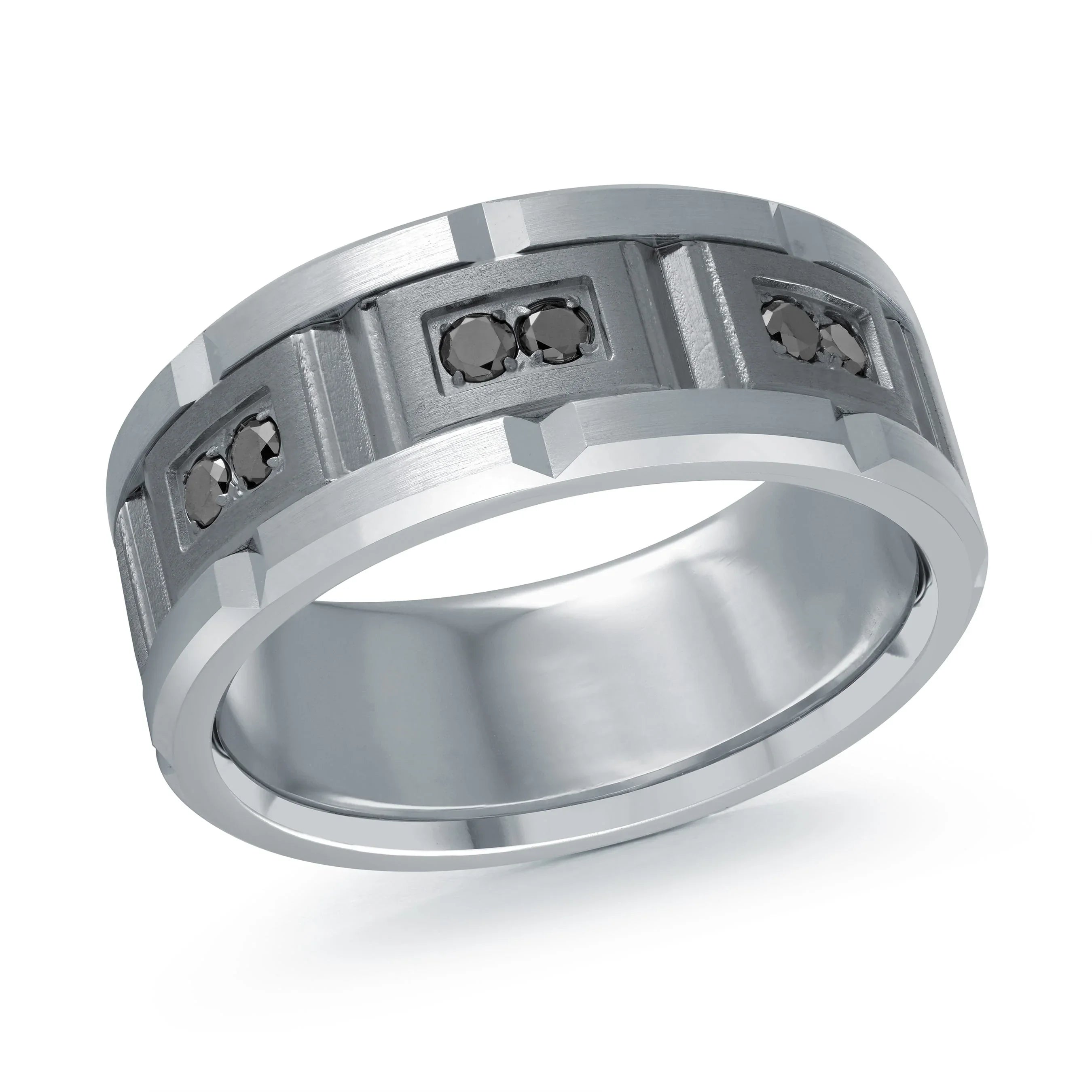 14K White Gold with Carbon Fiber Ring from the Tantalum Collection by Malo - MRDTN-054-9WBD