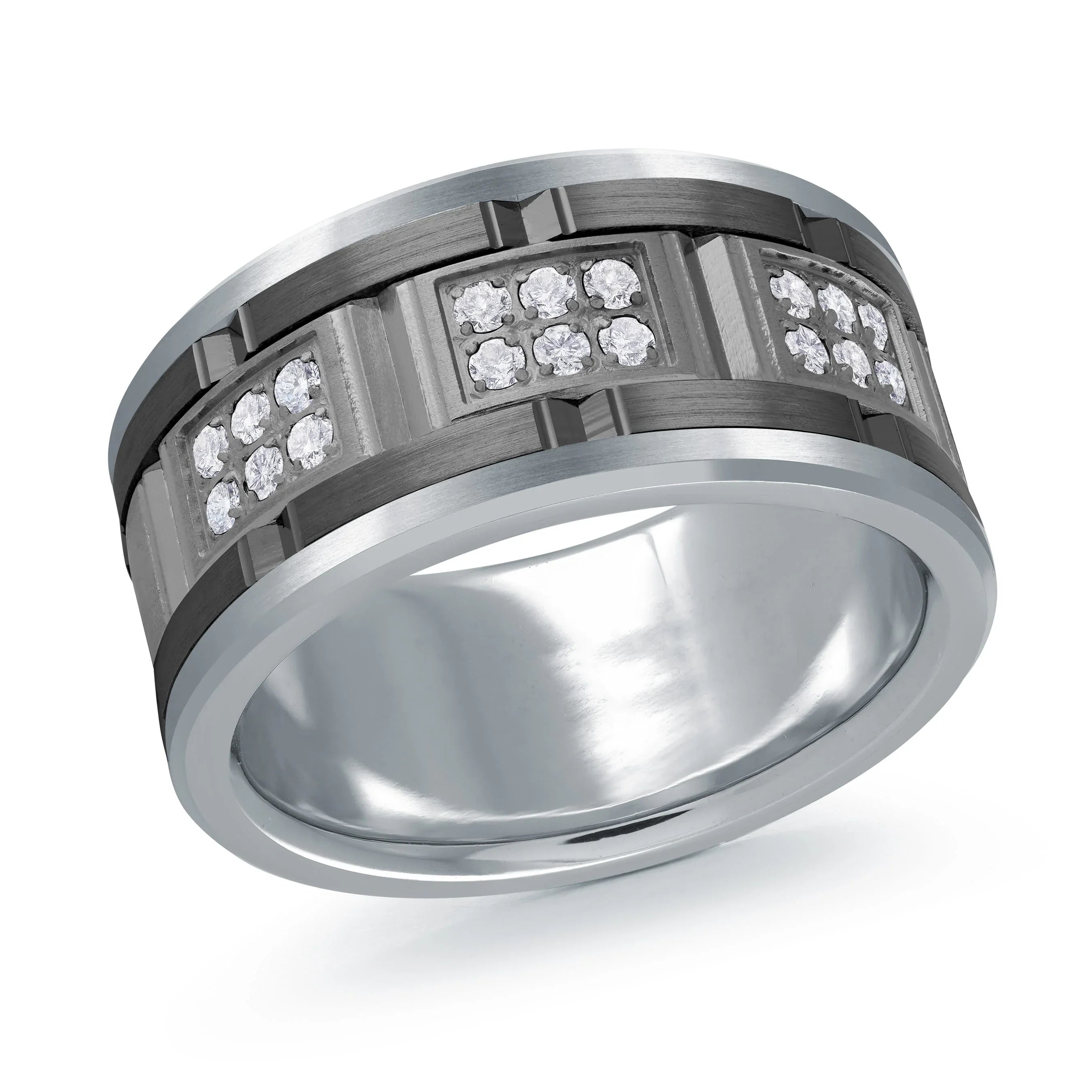 14K White Gold with Carbon Fiber Ring from the Tantalum Collection by Malo - MRDTN-055-11WBD