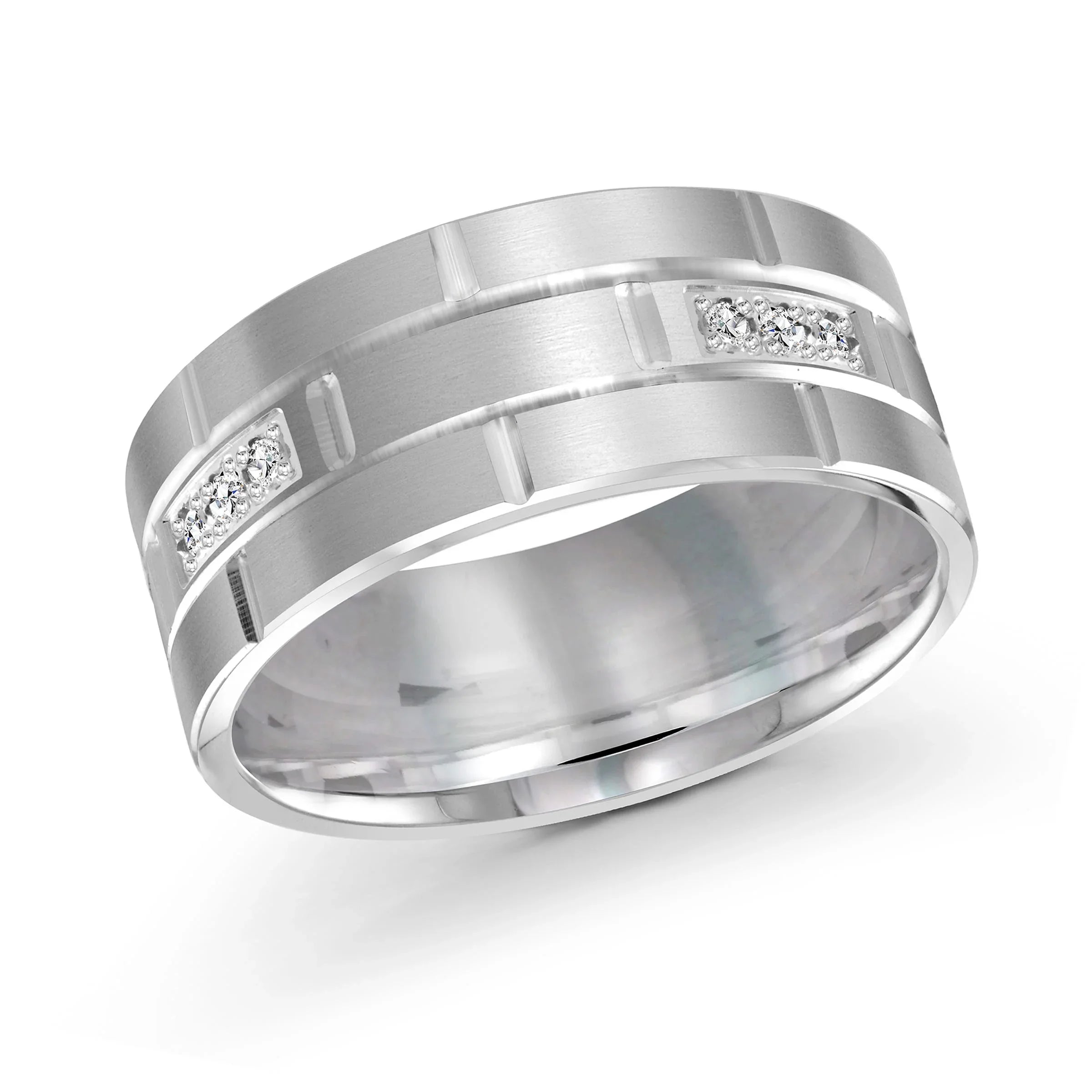 14K White Gold with Inlaid Diamonds Ring from the Executif Collection by Malo - FJMD-002-9W18