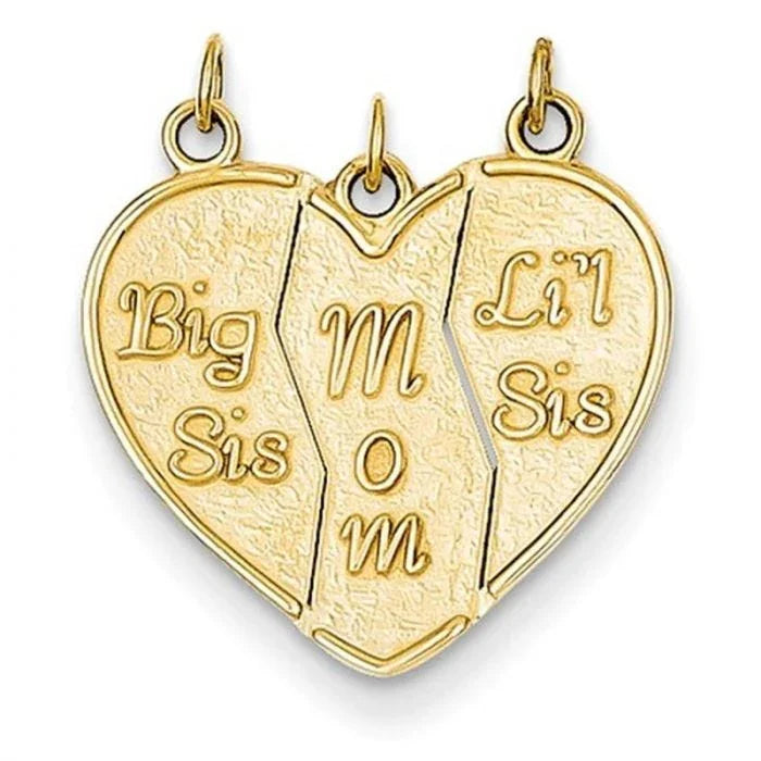 14k Yellow Gold Big Sis, Mom, Lil Sis Break-Apart Heart Charm Pendant