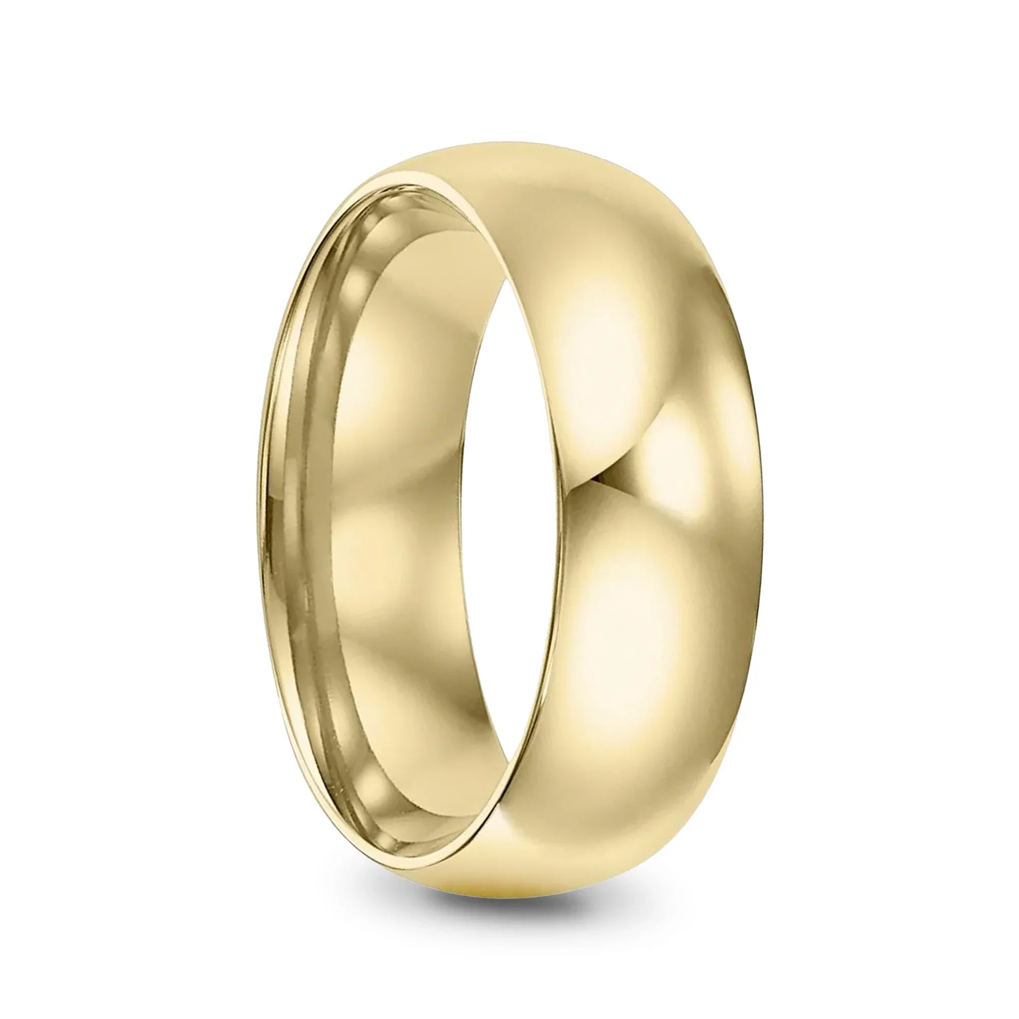 14k Yellow Gold Men's Domed Ring with Polished Finish - 5mm-10mmAnother traditional wedding ring style that has withstood the test of time. This classic domed 14k Gold Wedding Bands has a highly polished finish and a rounded interior for increased comfort. This ring is available in 5mm-10mm widths.