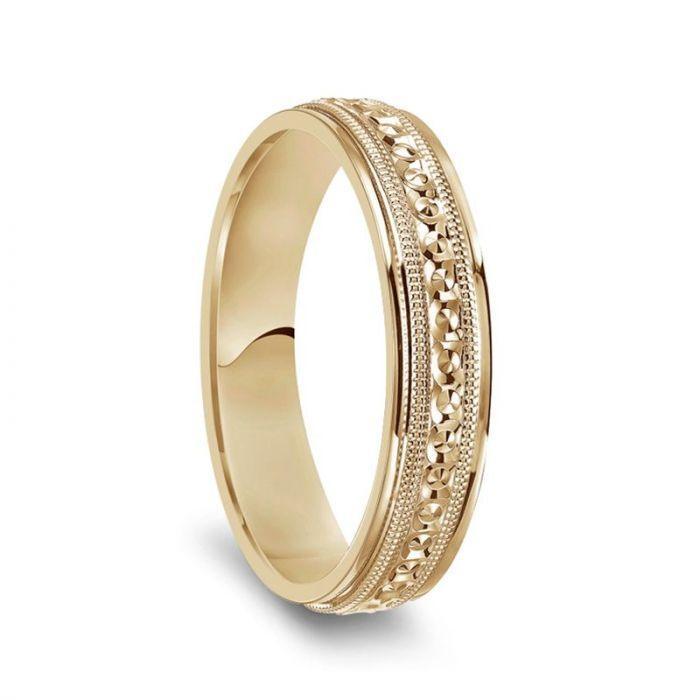 14k Yellow Gold Milgrain Accented Women’s Polished Wedding Ring - 4mm and 6mm