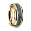 14K Yellow Gold Polished Beveled Edges Wedding Ring with Blue Dinosaur Bone Inlay - 8 mm