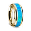 14K Yellow Gold Polished Beveled Edges Wedding Ring with Blue Opal Inlay - 8 mm