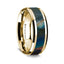14K Yellow Gold Polished Beveled Edges Wedding Ring with Natural Spectrolite Inlay - 8 mm